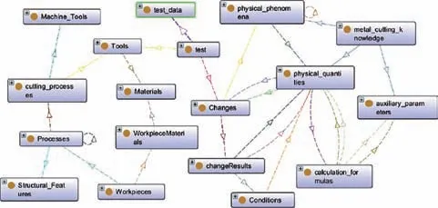 建立“Processes”"Forging_processes"類作為橋梁來連接熱模鍛成形的各個(gè)要素,熱模鍛成形過程本體模型如圖16所示。在上述模型的基礎(chǔ)上,形成如圖17所示的金屬熱模鍛完整本體模型,包含了事實(shí)性知識(shí)和過程性知識(shí)的基本類、對象屬性和數(shù)據(jù)屬性。