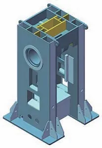壓力機(jī)機(jī)架結(jié)構(gòu)如圖20所示,機(jī)身間距相比一般壓力機(jī)得到了加寬,更方便實(shí)現(xiàn)多工位布局,且能加入操控性更強(qiáng)的大重量曲軸,使得設(shè)備能力更大。設(shè)備主板得到了加強(qiáng),整體剛性高于國家標(biāo)準(zhǔn)3倍.提高了加工精度與使用壽命。設(shè)備參考MP型輕型機(jī)的設(shè)計(jì),將壓力角增大到20°:同時(shí),該設(shè)備采用了多層摩擦片結(jié)構(gòu),增大離合器扭矩,有效提高了打擊力。此外,該設(shè)備還考慮了鍛件在生產(chǎn)過程中溫度變低和工人操作間隔時(shí)間不一致導(dǎo)致噸位異常超出的情況,進(jìn)行了特殊設(shè)計(jì)。