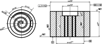 毛坯尺寸。鐘形罩的類型可以根據(jù)沿軸線截面變化較大的長軸類鍛件的計(jì)算原則來確定坯料的直徑,通過公式d=(4V/π1)1/2計(jì)算確定毛坯直徑d=103mm,長度I=55mm,質(zhì)量m=3.1kg。